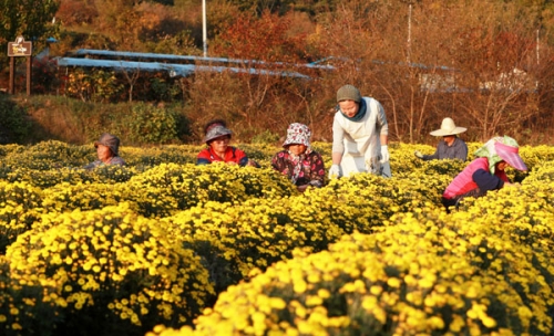 Áö³ 5ÀÏ ¿ÀÈÄ ÀǷɱº ±Ã·ù¸é õ»ó°ñ ¸í¸² ´Ù·Ê¿ø °¨±¹È¹ç¿¡¼ ½Å¿µÁø, Á¶Èñ¿Á ¾¾ ºÎºÎ°¡ ÀÌ¿ô Áֹεé°ú ÇÔ²² ±¹ÈÂ÷ÀÇ ¿ø·á·Î »ç¿ëÇϴ Ȳ±Ýºû °¨±¹È ¼öÈ®À» Çϰí ÀÖ´Ù. °¨±¹Àº ÁÖ·Î »ê¿¡¼ ÀÚ»ýÇϸç 9¡10¿ù¿¡ ÁÙ±â ÀºÎºÐ¿¡ »ê¹æ²Ã·Î µÎÈ(Ôéü£)°¡ ÇÉ´Ù. ²ÉÀº Áö¸§ 2.5cm Á¤µµ·Î ÁÖ·Î ³ë¶õ»öÀ̳ª Èò»öÀ̸ç 10¿ù¿¡ ²ÉÀ» ¸»·Á¼ ¼ú¿¡ ³Ö¾î ¸¶½Ã°í Â÷¸¦ ¸¸µé¾î ¸¶½Ã´Â °Ô ÀϹÝÀûÀ̰í Çѹ濡¼´Â ¿ °¨±â¤ýÆó·Å¤ý±â°üÁö¿° µîÀÇ Ä¡·á¿¡ ó¹æÇÑ´Ù. /±è¾ç¼ö ±âÀÚ »çÁøÁ¦°ø=ÀǷɱºÃ»