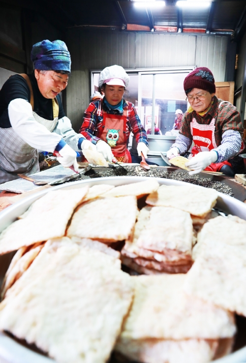 | 2ÀÏ ¿ÀÀü ÇԾ籺 Áö°î¸é °³ÆòÇÑ¿Á¸¶À»¿¡¼ °Ü¿ïö ³óÇѱ⸦ ¸Â¾Æ ¸¶À» ÁֹεéÀÌ ÀåÀÛºÒ¿¡ ´Þ±ÅÁø ÀÚ°¥¿¡ ±Á´Â ÀüÅë¹æ½ÄÀ¸·Î ÇѰú¸¦ ¸¸µé°í ÀÖ´Ù. °³Æò¸¶À» ÀÚ°¥ÇѰú´Â Á÷Á¢ »ý»êÇÑ Âý½Ò°ú ÄáÀ» ¹ÝÁ×ÇØ ±â¸§¿¡ Æ¢±âÁö ¾Ê°í ÀÚ°¥¿¡ ±Á¾î¼ °í¼ÒÇÏ°í ´ã¹éÇÑ ¸ÀÀÌ ÀÏǰÀÌ´Ù. /¹ÚÇüÀÎ ±âÀÚ »çÁøÁ¦°ø=ÇԾ籺û |