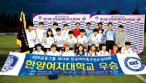ÇÕõÀ» ¶ß°Ì°Ô ´Þ±¸°í ÀÖ´Â KDB±ÝÀ¶±×·ì Àü±¹¿©ÀÚÃ౸¼±¼ö±Ç´ëȸÀÇ ´ëÇкΠ¿ì½ÂÄÅÀ» ¼¿ï ÇѾ翩ÀÚ´ëÇб³°¡ µé¾î¿Ã·È´Ù.