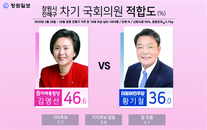 ¿À´Â 4¿ù 21´ë ÃѼ±¿¡¼ ¸¸¾à ´õºÒ¾î¹ÎÁÖ´ç Ȳ±âö (Àü) ÇØ±ºÂü¸ðÃÑÀå°ú ¹Ì·¡ÅëÇÕ´ç ±è¿µ¼± (Àü) Çѳª¶ó´ç ´ç´ëÇ¥°¡ ¾çÀÚ´ë°á ÇÑ´Ù¸é ´©±¸¸¦ ´õ ÁöÁöÇϽðڴ°¡¶ó´Â Áú¹®¿¡¡ã±è¿µ¼± 46.6.% ¡ãȲ±âö 36.0% ¡ã±âŸ Èĺ¸ 7.7% ¡ãÁöÁöÈĺ¸ ¾øÀ½ 5.6% ¡ãÀß ¸ð¸§ 4.1% ·Î Á¶»çµÆ´Ù.