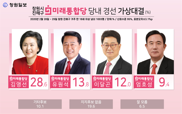 ¹Ì·¡ÅëÇÕ´ç ÁøÇر¸ ±¹È¸ÀÇ¿øÈĺ¸ ¼±Ãâ ´ç³» °æ¼±¿¡¼ ¸¸¾à ´ÙÀ½ È帵éÀÌ ´ë°áÇÑ´Ù¸é ´©±¸¸¦ ´õ ÁöÁöÇϰڴ°¡¶ó´Â Áú¹®¿¡ ¡ã±è¿µ¼± 28.6% ¡ãÀ¯¿ø¼® 13.8% ¡ãÀÌ´Þ°ï 12.0% ¡ã¾öÈ£¼º 9.4% ¡ã±âŸ 10.1% ¡ãÁöÁöÈĺ¸ ¾øÀ½ 19.6% ¡ãÀß ¸ð¸§ 6.5% ·Î Á¶»çµÆ´Ù.