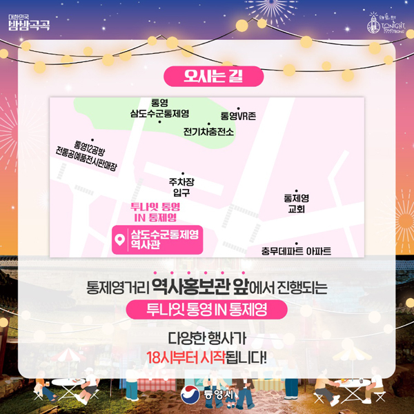 ¾ß°£°ü±¤ Ưȵµ½Ã Á¶¼º»ç¾÷ÀÇ ÀÏȯÀ¸·Î °³ÃÖÇÏ´Â `Åõ³ªÀÕ Å뿵 in ÅëÁ¦¿µ`Àº ¿ª»ç ¹®È°ø°£ÀÎ »ïµµ¼ö±ºÅëÁ¦¿µÀ» ¹è°æÀ¸·Î ´Ù¾çÇÑ Ã¼Çè°ú ¸¶ÄÏ, À̺¥Æ® µîÀÇ ´Ù¾çÇÑ ÄÜÅÙÃ÷¸¦ Á¦°øÇØ °¡À»¹ã ÅëÁ¦¿µ°Å¸®¸¦ ãÀº ½Ã¹Î°ú °ü±¤°´¿¡°Ô dz¼ºÇÑ º¼°Å¸®¤ý¸ÔÀ»°Å¸®¤ýÁñ±æ°Å¸®¸¦ Á¦°øÇÒ ¿¹Á¤ÀÌ´Ù.