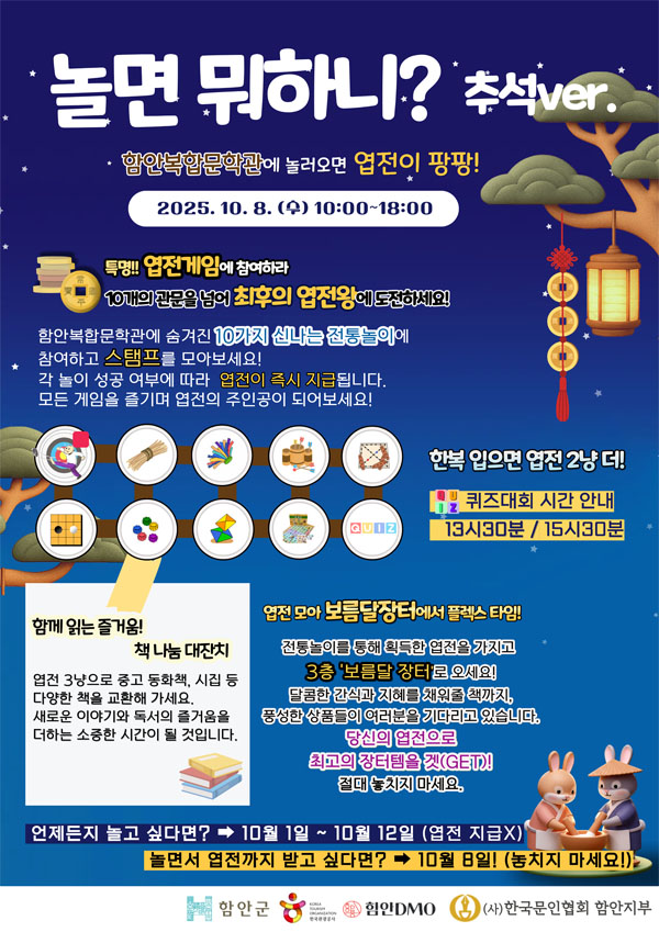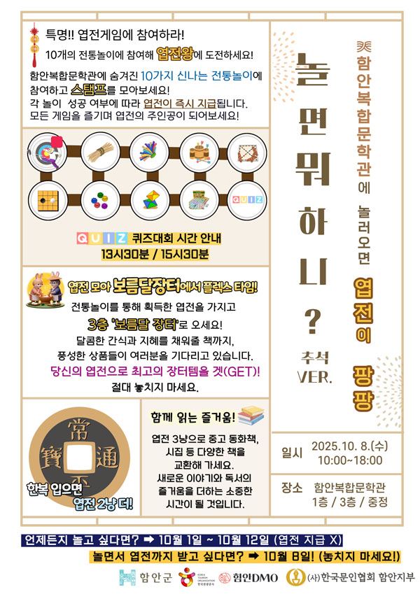 ƯÈ÷ 8ÀÏ ¿ÀÀü 10½ÃºÎÅÍ ¿ÀÈÄ 6½Ã±îÁö´Â ÇÔ¾È µð¿¥¿À(DMO), ÇԾȹ®ÀÎÇùȸ, ÇԾȳó¿ä¿Í ÇÔ²²ÇÏ´Â `³î¸é ¹¹ÇÏ´Ï? Ãß¼® ¹öÀü`ÀÌ ¿·Á °¡Á· ´ÜÀ§ ¹æ¹®°´µé¿¡°Ô dz¼ºÇÑ ÀüÅë¹®È Ã¼ÇèÀÇ ÀåÀÌ ¸¶·ÃµÉ ¿¹Á¤ÀÌ´Ù.