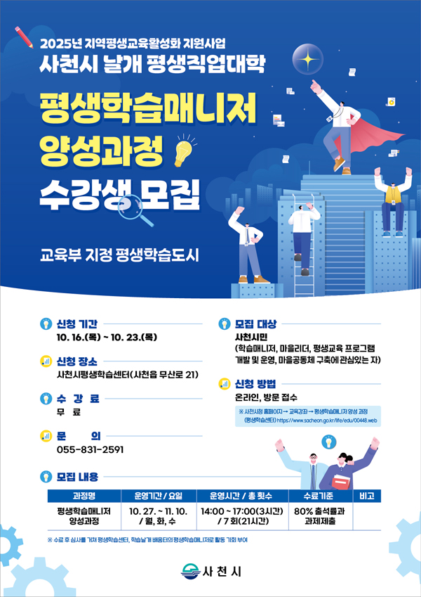 »çõ½Ã´Â ¿À´Â 16ÀϺÎÅÍ 23ÀϱîÁö Áö¿ªÆò»ý±³À°È°¼ºÈ »ç¾÷ Áß `Æò»ýÇнÀ¸Å´ÏÀú ¾ç¼º°úÁ¤` ¼ö°»ýÀ» ¸ðÁýÇÑ´Ù°í 13ÀÏ ¹àÇû´Ù.