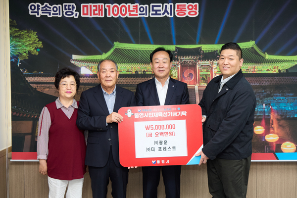 ¢ß±¤¿î°ú ¢ß´õ Æ÷·¹½ºÆ®´Â Áö³ 13ÀÏ Å뿵½ÃûÀ» ¹æ¹®ÇØ ÀÎÀçÀ°¼º±â±Ý 500¸¸¿øÀ» ±âŹÇß´Ù.