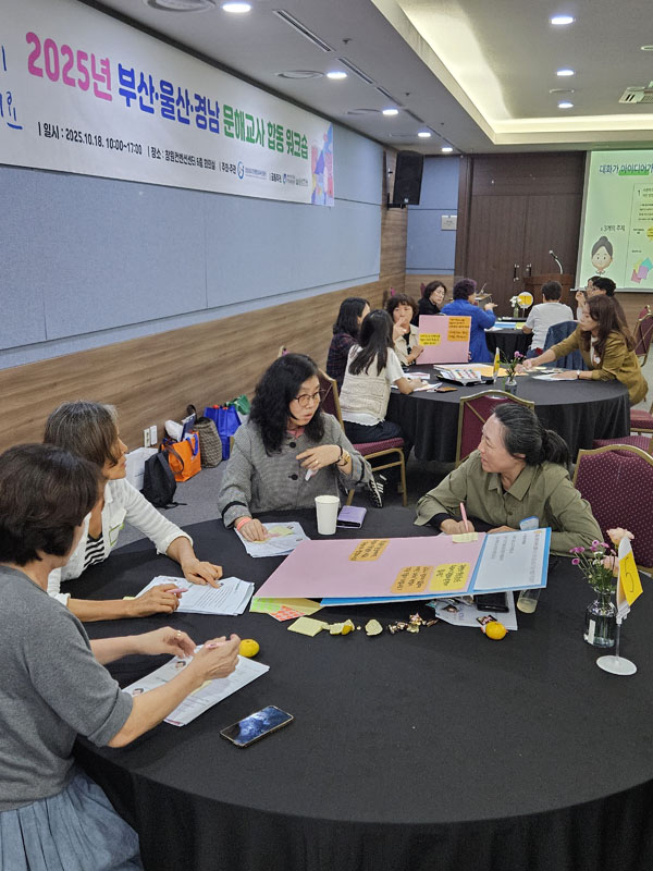 À̹ø ¿öÅ©¼óÀº °æ³²ÀÎÀçÆò»ý±³À°ÁøÈï¿ø(°æ³²¹®Çر³À°¼¾ÅÍ)ÀÌ ÁÖÃÖÇÏ°í ºÎ»ê¿©¼º°¡Á·°ú Æò»ý±³À°ÁøÈï¿ø(ºÎ»ê¹®Çر³À°¼¾ÅÍ), ¿ï»ê¿¬±¸¿ø(¿ï»ê¹®Çر³À°¼¾ÅÍ)ÀÌ °øµ¿ ÁÖ°üÇØ °æ³², ºÎ»ê, ¿ï»ê Áö¿ªÀÇ ¹®Çر³»ç 54¸íÀÌ ÇÑÀÚ¸®¿¡ ¸ð¿© ±³·ùÇϰí Àü¹®¼ºÀ» °ÈÇÏ´Â ÀåÀ» ¸¶·ÃÇß´Ù.