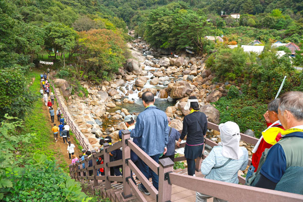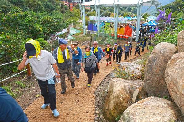 Âü¿©ÀÚµéÀº ¹°¼Ò¸®ºû±¤Àå¿¡¼ Ãâ¹ßÇØ ¿Õº¹ ¾à 4§°(¾à 2½Ã°£ ¼Ò¿ä)ÀÇ ÄÚ½º¸¦ ¿ÏÁÖÇϸç Áö¸®»ê ÀÚ¶ôÀÇ °¡À» Á¤Ã븦 ¸¸³£Çß´Ù.