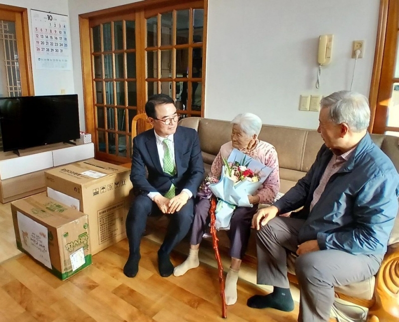 À̳¯ ÀåÃæ³² ±º¼ö´Â ¹ÚÈ«·Ê ¾î¸£½Å°ú ±è¸·½É ¾î¸£½Å´ìÀ» Á÷Á¢ ¹æ¹®ÇØ 50¸¸¿ø »ó´çÀÇ ¸ÂÃãÇü Àå¼öÃàÇϹ°Ç°°ú Àå¼öÁöÆÎÀÌ(û·ÁÀå)¸¦ Àü´ÞÇß´Ù.