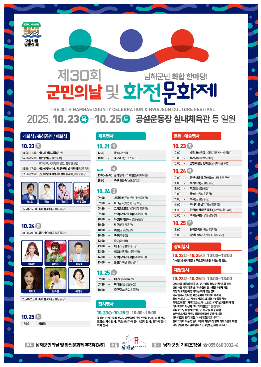 ³²ÇرºÀº 23ÀϺÎÅÍ 25ÀϱîÁö 3Àϰ£, ³²Çذø¼³¿îµ¿Àå ¹× ½Ç³»Ã¼À°°ü ÀÏ¿ø¿¡¼ ¿¸®´Â ¡®Á¦30ȸ ±º¹ÎÀÇ ³¯ ¹× ÈÀü¹®ÈÁ¦¡¯ ±â°£ µ¿¾È dz¼ºÇÑ Àü½Ã¡¤Ã¼Çè Çà»ç°¡ ÆîÃÄÁø´Ù°í ¹àÇû´Ù.