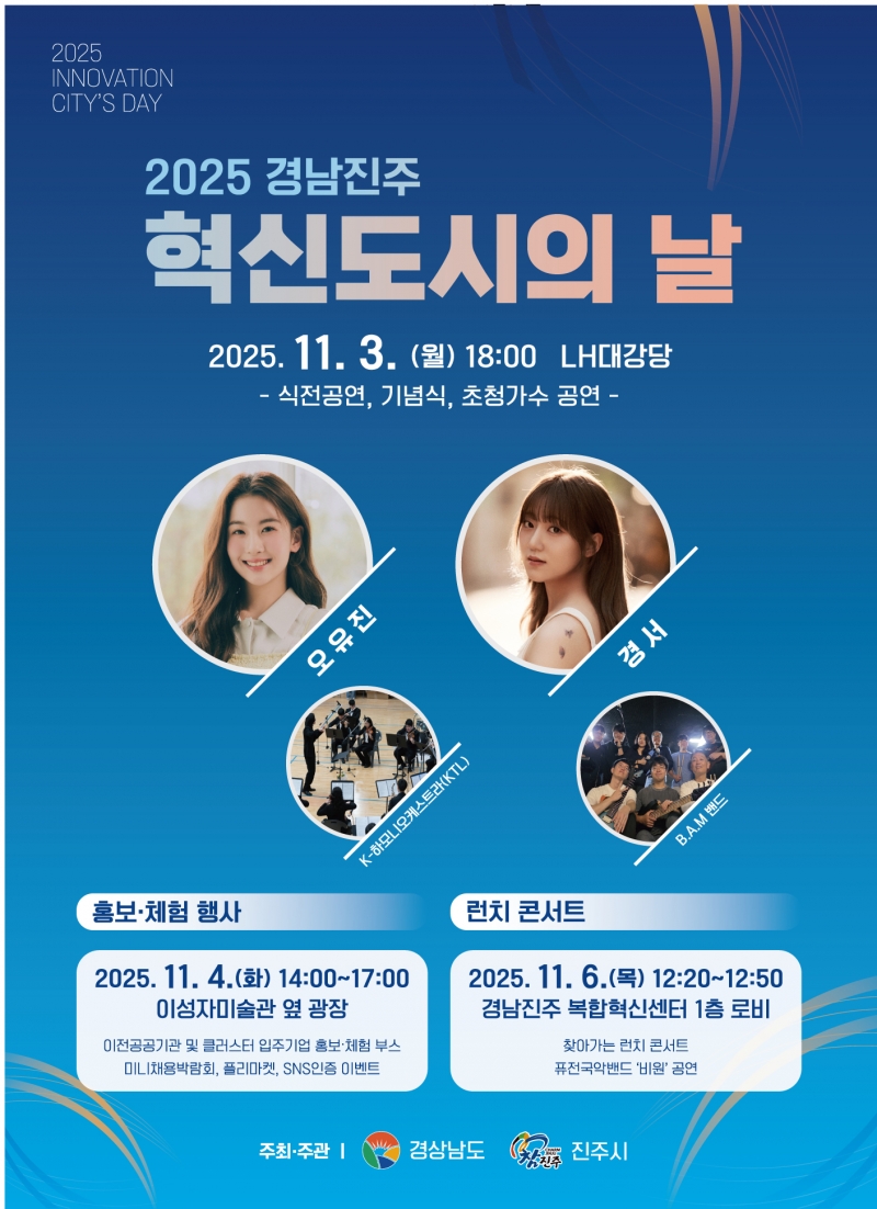 `2025 °æ³²ÁøÁÖ Çõ½Åµµ½ÃÀÇ ³¯` Çà»ç°¡ ¿À´Â 11¿ù 3ÀϺÎÅÍ 9ÀϱîÁö °æ³² ÁøÁÖ Çõ½Åµµ½Ã ÀÏ¿ø¿¡¼ ¿¸°´Ù.