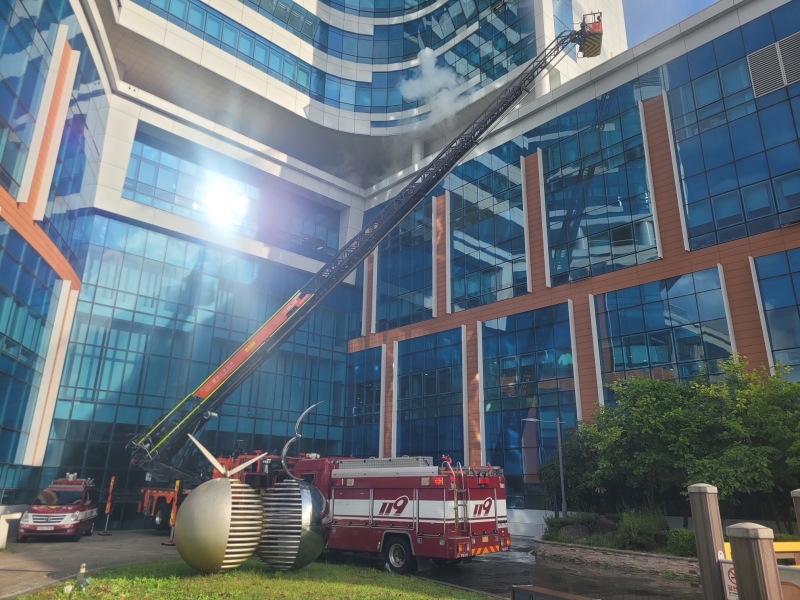 À̹ø ÈÆ·ÃÀº ÈÀç¿¡ ´ëÇÑ °æ°¢½ÉÀ» ³ôÀ̰í ÈÀç ¹ß»ý ½Ã ´ëÀÀ´É·ÂÀ» Ű¿ì±â À§ÇØ ½ÃÇàÇßÀ¸¸ç, ¼Ò¹æ°ø¹«¿ø 15¿©¸í°ú ÀÚÀ§¼Ò¹æ´ë 50¿©¸íÀÌ Âü¼®ÇÑ °¡¿îµ¥ º´¿ø ³» 7Ãþ¿¡¼ ÈÀç¹ß»ýÀ» °¡Á¤ÇØ ÈÆ·ÃÀ» ÁøÇàÇß´Ù.