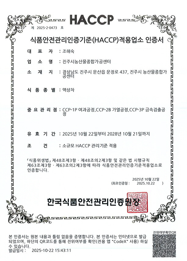 ÁøÁֽà ³ó»ê¹°Á¾ÇÕ°¡°ø¼¾ÅÍ´Â Áö¿ª³ó»ê¹°À» Ȱ¿ëÇØ °¡°øÁ¦Ç° °³¹ß°ú ³ó¾÷ÀÎÀÇ ¼ÒµæÃ¢ÃâÀ» µ½°í ÀÖÀ¸¸ç, Áö³ÇØ 7¿ù °úäÁÖ½º·ù¿Í ĵµð·ù 2°³ À¯Çü¿¡ ´ëÇØ `HACCP` ÀÎÁõÀ» ¹ÞÀº ÈÄ, ¿ÃÇØ Áö³ 22ÀÏ Àë·ù¿Í ¾×»óÂ÷ 2°³ À¯ÇüÀ» Ãß°¡·Î ÀÎÁõ¹Þ¾Æ ³ó»ê¹°Á¾ÇÕ°¡°ø¼¾ÅÍ¿¡¼ »ý»êµÇ´Â Á¦Ç°ÀÇ ¾ÈÀü¼º°ú ½Å·Úµµ¸¦ ÇÑÃþ ´õ ³ô¿´´Ù.