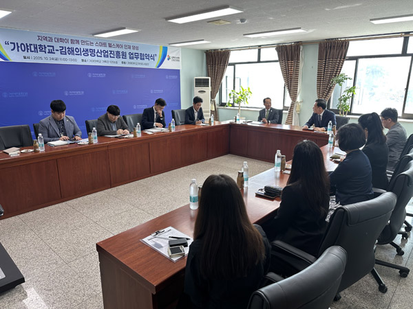 °¡¾ß´ëÇб³´Â Áö³ 24ÀÏ ±³³» ȸÀǽǿ¡¼ ±èÇØÀÇ»ý¸í»ê¾÷ÁøÈï¿ø°ú ½º¸¶Æ® ÇコÄÉ¾î ½Ç¹«¿ª·® °È ¹× ÇöÀå ±â¹Ý ±³À° ½ÇÇöÀ» À§ÇÑ ¾÷¹«Çù¾à(MOU)À» ü°áÇß´Ù°í ¹àÇû´Ù.