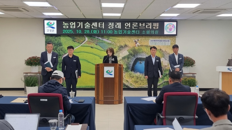 | ±èÇöÁÖ °í¼º±º ³ó¾÷±â¼ú¼¾ÅÍ ¼ÒÀåÀÌ ¼ÒȸÀǽǼ ã¾Æ°¡´Â Á¤·Ê ¾ð·Ðºê¸®ÇÎÀ» ÁøÇàÇϰí ÀÖ´Ù. |