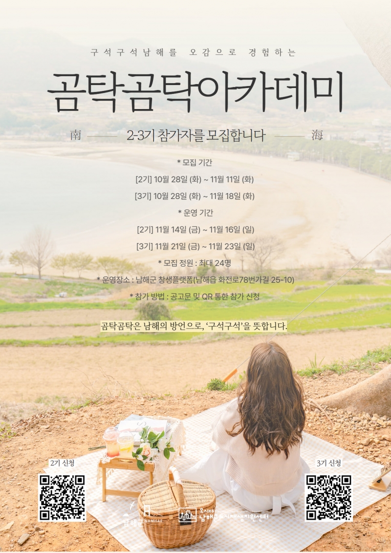 °õʰõŹ ¾ÆÄ«µ¥¹Ì 2±â´Â ¿À´Â 11¿ù 14ÀϺÎÅÍ 16ÀϱîÁö, 3±â´Â ¿À´Â 11¿ù 21ÀϺÎÅÍ 23ÀϱîÁö ³²Çرº â»ýÇ÷§Æû(³²ÇØÀ¾ ÈÀü·Î78¹ø°¡±æ 25-10)¿¡¼ ÁøÇàµÈ´Ù.