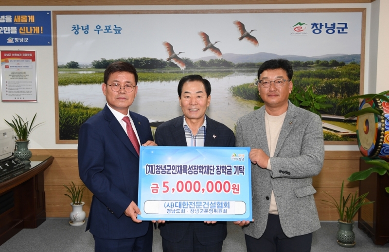 â³ç±ºÀº Áö³ 29ÀÏ (»ç)´ëÇÑÀü¹®°Ç¼³Çùȸ °æ³²µµÈ¸ ±èÁÖ»ý ȸÀå°ú â³ç±º¿î¿µÀ§¿øÈ¸ À念ÁØ ¿î¿µÀ§¿øÀåÀÌ (Àç)â³ç±ºÀÎÀçÀ°¼ºÀåÇÐÀç´Ü¿¡ Áö¿ª ÀÎÀç À°¼ºÀ» À§ÇÑ ÀåÇÐ±Ý 500¸¸¿øÀ» ±âŹÇß´Ù°í ¹àÇû´Ù.