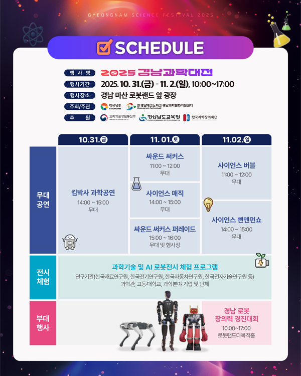 `»ó»ó·Â°ú °úÇÐ, AI¿Í ·Îº¿ÀÌ ÇÔ²²ÇÏ´Â °æ³²°úÇдëÀü`À» ½½·Î°ÇÀ¸·Î ¡ãAI¤ý·Îº¿Á¸ ¡ãÀ¶ÇÕ°úÇÐÁ¸ ¡ã»ó»ó°úÇÐÁ¸ ¡ã»çÀ̾𽺠Ç÷¹ÀÌÁ¸ ¡ã»çÀ̾𽺠½ºÅ×ÀÌÁöÁ¸À» ÁغñÇß´Ù.