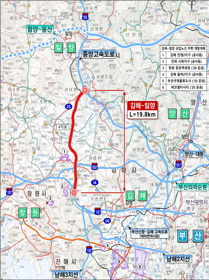 ±èÇØ~¹Ð¾ç °í¼Óµµ·Î °Ç¼³»ç¾÷Àº »ç¾÷ºñ 1Á¶ 4,965¾ï¿ø, ÃÑ¿¬Àå 19.8§° ±Ô¸ð·Î ±èÇØ½Ã Áø·Ê¸é°ú ¹Ð¾ç½Ã »ó³²¸éÀ» ¿¬°áÇÏ´Â ³ë¼±ÀÌ´Ù.