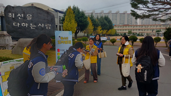 Âü¿©ÀÚµéÀº µî±³ ½Ã°£¿¡ ¸ÂÃç ±³¹® ¾Õ¿¡¼ µµ¹Ú ¹× µðÁöÅÐ Áßµ¶ ¿¹¹æ ¹®±¸°¡ ´ã±ä È«º¸ Àü´Ü°ú ¾È³» ÀڷḦ ¹èºÎÇϸç Áßµ¶ÀÇ À§Ç輺°ú ¿¹¹æÀÇ Á߿伺À» ¾Ë¸®´Â Ȱµ¿À» ÆîÃÆ´Ù.