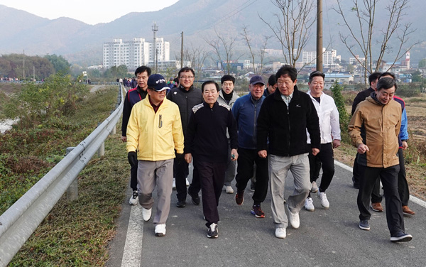 Âü°¡ÀÚµéÀº â³ç½ºÆ÷Ã÷ÆÄÅ© 5¹ø ±¸ÀåÀ» Ãâ¹ßÇØ ¿ÂÁ¤Ãµ ÀÚÀü°Å±æÀ» µû¶ó ¿Õº¹ 4km ÄÚ½º¸¦ ¿Ïº¸Çϸç, °¡À»ÀÌ Ã£¾Æ µç ¿ÂÁ¤ÃµÀÇ ¾Æ¸§´Ù¿î ¾ÆÄ§ dz°æÀ» ¸¸³£Çϰí ÀÌ¿ôÀÇ Á¤À» ÇÔ²² ³ª´³´Ù.