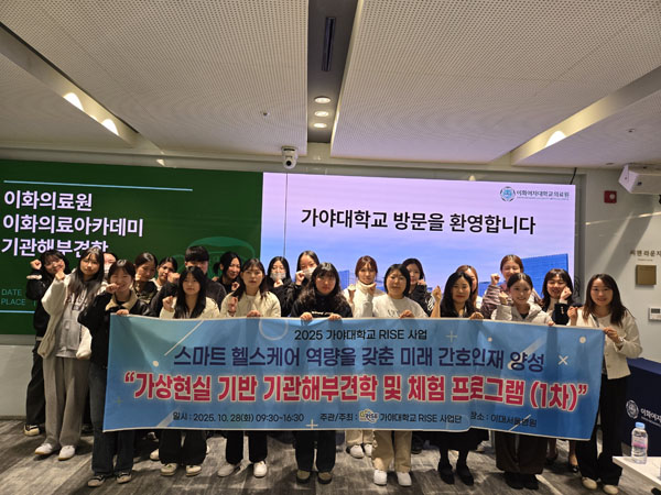 °¡¾ß´ëÇб³ RISE»ç¾÷´Ü °£È£Çаú °ü°èÀÚ´Â À̹ø ÇÁ·Î±×·¥À» °è±â·Î ¡ã½º¸¶Æ® ÇコÄÉ¾î ½Ç½À ÇÁ·Î±×·¥ È®´ë ¡ãVR¤ýAI À¶ÇÕÇü °£È£±³À°°úÁ¤ °³¹ß ¡ãº´¿ø ¹× »ê¾÷ü ¿¬°èÇü üÇèÇü ±³À° Ȱ¼ºÈ¸¦ Áö¼Ó ÃßÁøÇØ ¹Ì·¡ ÀÇ·á ȯ°æ º¯È¿¡ ´Éµ¿ÀûÀ¸·Î ´ëÀÀÇÒ ¼ö ÀÖ´Â ÇöÀåÇü °£È£ Àü¹® ÀÎÀç ¾ç¼º¿¡ ¹ÚÂ÷¸¦ °¡ÇÒ °èȹÀ̶ó°í ¹àÇû´Ù.