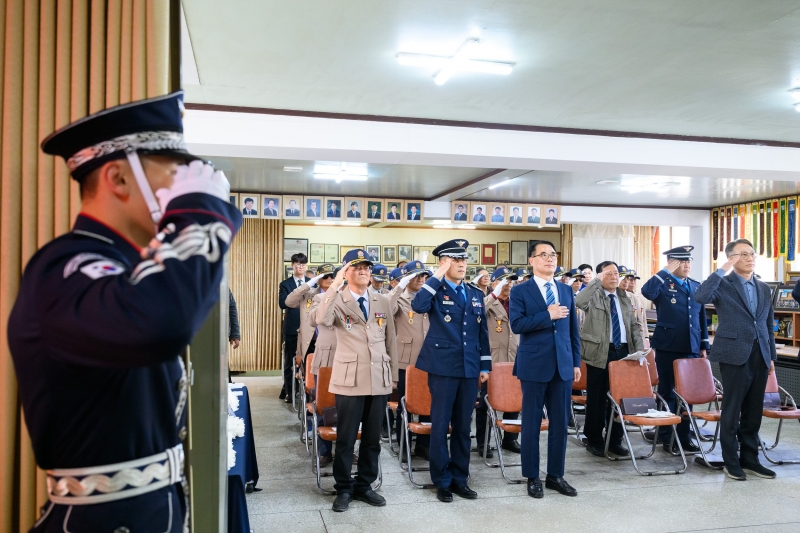À̳¯ Ã߸ð½Ä¿¡´Â ÀåÃæ³² ±º¼ö, »ç´Ü¹ýÀÎ °ø±ºROTCÀ屳ȸ ±è¼®Âù ȸÀå, ROTCÀåÇÐÀç´Ü ¿øÁ¾»ï ÀÌ»ç, ´ëÇѹα¹ °ø±º±³À°»ç·ÉºÎ Ȳ¿µ¹Î ´ë·É, ¿ù³²ÀüÂüÀüÀ¯°øÀÚȸ ³²ÇرºÁöȸ ±è¿ø±Ù ȸÀå ¹× È¸¿ø µî 50¿©¸íÀÌ Âü¼®ÇØ Àü¸ô¿ë»çµéÀÇ ³ÌÀ» À§·ÎÇÏ°í ¸íº¹À» ºô¾ú´Ù.