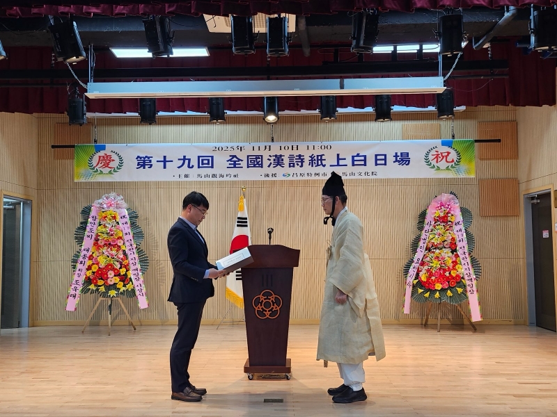 â¿øÆ¯·Ê½Ã ¸¶»ê°üÇØÀ½»ç°¡ ÁÖÃÖ¤ýÁÖ°üÇϰí â¿ø½Ãû°ú ¸¶»ê¹®È¿øÀÌ ÈÄ¿øÇÏ´Â Á¦19ȸ Àü±¹ÇѽÃÁö»ó¹éÀÏÀå ½Ã»ó½ÄÀÌ 10ÀÏ ¸¶»ê¹®È¿ø ´ë°´ç¿¡¼ ¼ºÈ²¸®¿¡ °³ÃֵƴÙ.