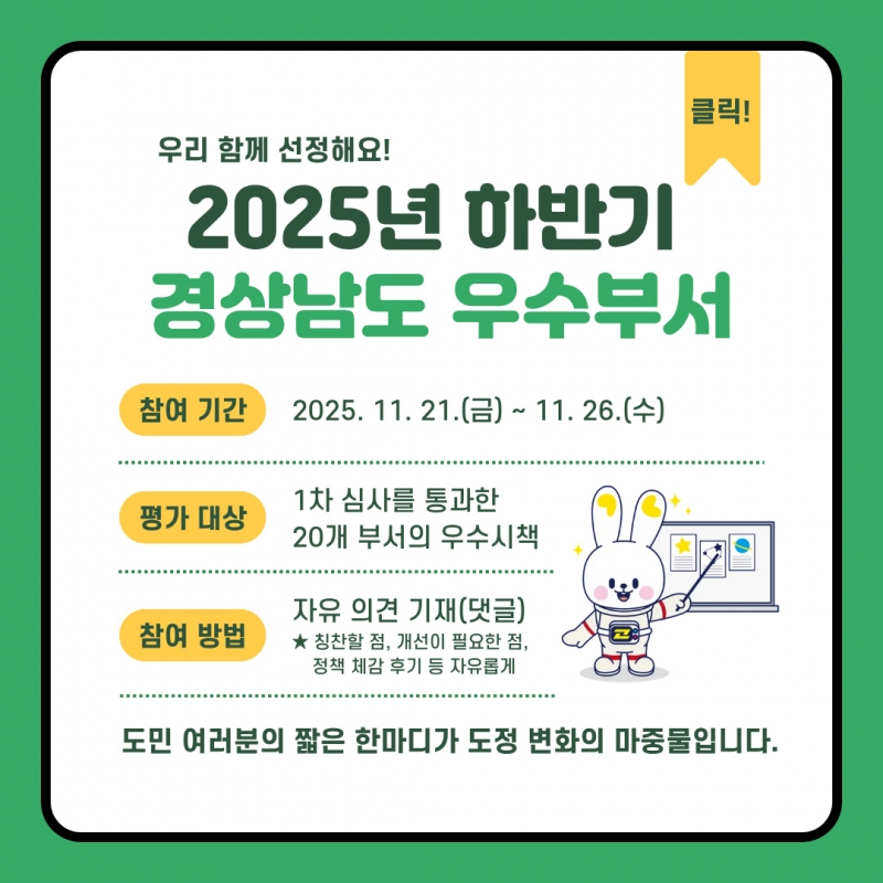 Âü¿© °æ·Î´Â °æ³²µµ ´©¸®Áý - ¹Î¿øÂü¿© - µµ¹ÎÂü¿© - µµ¹ÎÁ¦¾È - °æ³²µµ°¡ ¹¯½À´Ï´Ù - `2025³â ÇϹݱ⠿ì¼öºÎ¼ ¼±Á¤ Àǰ߼ö·Å`·Î Á¢¼ÓÇÏ¸é µÈ´Ù.