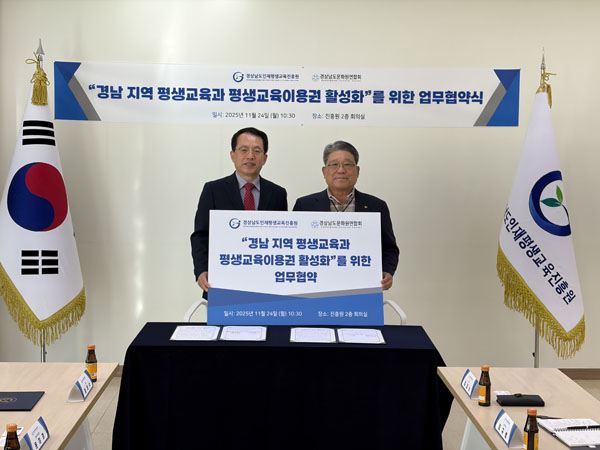 °æ³²µµÀÎÀçÆò»ý±³À°ÁøÈï¿ø°ú °æ³²µµ¹®È¿ø¿¬ÇÕȸ´Â 24ÀÏ °æ³²ÀÎÀçÆò»ý±³À°ÁøÈï¿ø¿¡¼ `Æò»ý±³À°ÀÌ¿ë±Ç »ç¿ë Ȱ¼ºÈ ¹× Áö¿ª Æò»ý±³À° Áö¿ø °È¸¦ À§ÇÑ ¾÷¹«Çù¾à(MOU)`À» ü°áÇß´Ù.