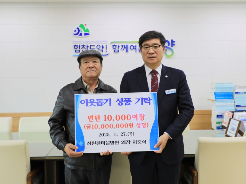 ÇԾ籺Àº Áö³´Þ 27ÀÏ Ã¢¿øÇѸ¶À½º´¿ø ÇÏÃæ½Ä ÀÇÀåÀÌ °íÇâ ÇÔ¾çÀÇ ¾î·Á¿î ÀÌ¿ôÀ» À§ÇØ ¿¬Åº 1¸¸¿©ÀåÀ» ±âŹÇß´Ù°í ¹àÇû´Ù.