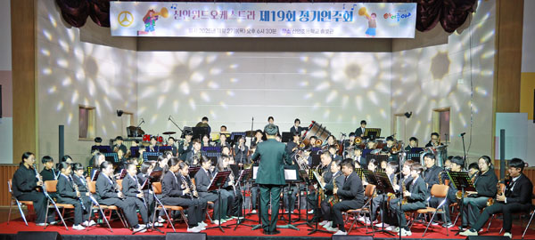 À̹ø ¿¬ÁÖȸ¿¡¼ 60¸íÀÇ ´Ü¿øÀ¸·Î ±¸¼ºµÈ ½Å¾ÈÃÊ °ü¾ÇºÎ ½Å¾ÈÀ©µå¿ÀÄɽºÆ®¶ó´Â `Spring Breath March`¸¦ ½ÃÀÛÀ¸·Î`Amazing Grace`,`Kpop Demon Hunters OST`µî ÃÑ 8°îÀ» ¼±º¸ÀÌ¸ç °¨µ¿À» ¼±»çÇß´Ù.