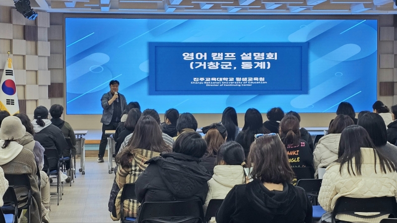 ¼³¸íȸ¿¡¼´Â ÁøÁÖ±³À°´ëÇб³ Æò»ý±³À°¿ø ÃÖ±ÔÈ« ¿øÀåÀÌ Âü¼®ÇØ ¿µ¾îÄ·ÇÁÀÇ ±³À° ¹æÇâ°ú ¼¼ºÎ ÇÁ·Î±×·¥À» Á÷Á¢ ¼³¸íÇß´Ù.