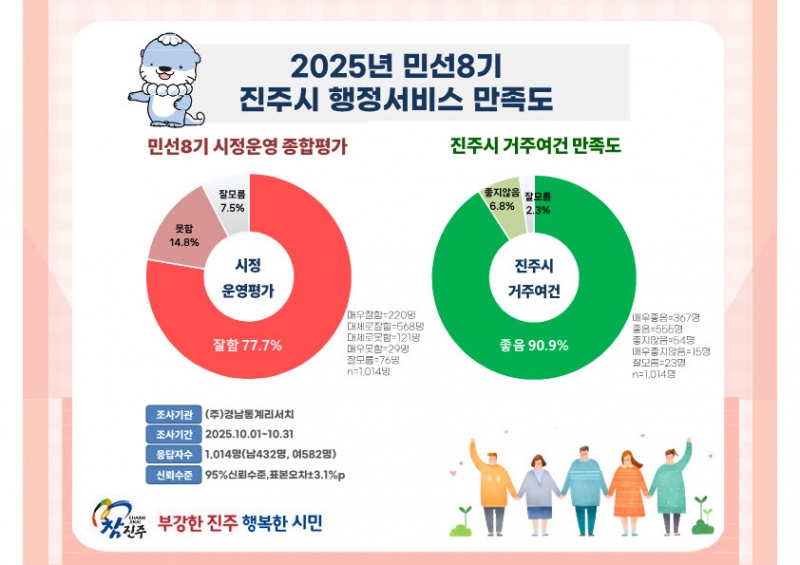 ÁøÁֽ𡠽ǽÃÇÑ `ÇàÁ¤¼ºñ½º ¸¸Á·µµ Á¶»ç`¿¡¼ ÁøÁֽà ¹Î¼± 8±â ½ÃÁ¤ ¿î¿µ¿¡ ´ëÇØ ÀÀ´äÀÚÀÇ 77.7%°¡ `ÀßÇϰí ÀÖ´Ù`°í Æò°¡Çß´Ù.
