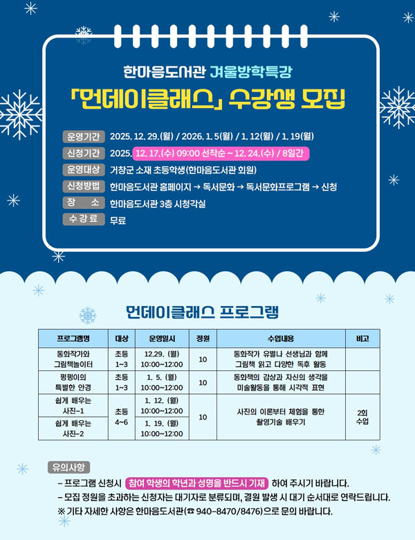 °ÅⱺÀº ÇѸ¶À½µµ¼°ü¿¡¼ °Ü¿ï¹æÇÐÀ» ¸ÂÀº ¾î¸°À̵éÀ» À§ÇÑ Æ¯º°ÇÁ·Î±×·¥ `¸Õµ¥ÀÌŬ·¡½º`¸¦ ¿î¿µÇÑ´Ù.