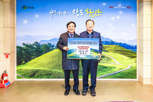 ÇԾȱºÀº Áö³ 24ÀÏ Ã¢¿ø½Ã ³»¼À¾¿¡ º»»ç¸¦ µÐ Á¦Á¶¾÷ü ¢ßºñÃ÷·Î À念±â ´ëÇ¥¿Í ÇԾȱº Ä¥¿øÀ¾ ¼ÒÀç ¢ßÇØ¼Û ¼ÁøÇõ ´ëÇ¥°¡ °íÇâ»ç¶û±âºÎ±Ý °¢ 200¸¸¿øÀ» ±âŹÇß´Ù°í ¹àÇû´Ù.