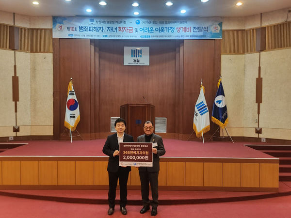 À̳¯ Çà»ç¿¡´Â â¿øÁö¹æ°ËÂûû ¸¶»êÁöû ±è½Â°É ÁöûÀå, ¹æÁؼº Çü»ç1ºÎÀå ¹Ú¿µ»ó Çü»ç2ºÎÀå°Ë»ç, ¼ÛÁø¹Î °Ë»ç, ÀÓȫö »ç¹«°úÀå, ¹ÚÀϼö ¼ö»ç°úÀå, ¹üÁËÇÇÇØÀÚÁö¿ø¼¾ÅÍ À±Å¼® ÀÌ»çÀå, ±è¿µ±â ºÎÀÌ»çÀå, ÀÌÁ¾¼ö ºÎÀÌ»çÀå ³²ÇÑ¿ì »ó´ãÁö¿øºÐ°ú À§¿øÀå, ÃÖ½ÂÇÊ ÇöÀåÁö¿øºÐ°ú À§¿øÀå, °ø¿µµ· ¹ý·üÁö¿ø ºÐ°ú À§¿øÀå, 365¿£¾¾Ä¡°úÀÇ¿ø ±èÀÌ»ó ºÎ´ëÇ¥°¡ Âü¼®ÇØ ±èÁ¾½Ä »ç¹«Ã³Àå ÀÇ »çȸ·Î ÇÐÀÚ±Ý, »ý°èºñ, ¹æÇÑ¿ëǰ ħ±¸·ù Àü´ÞÇà»ç¸¦ ÁøÇàÇß´Ù.