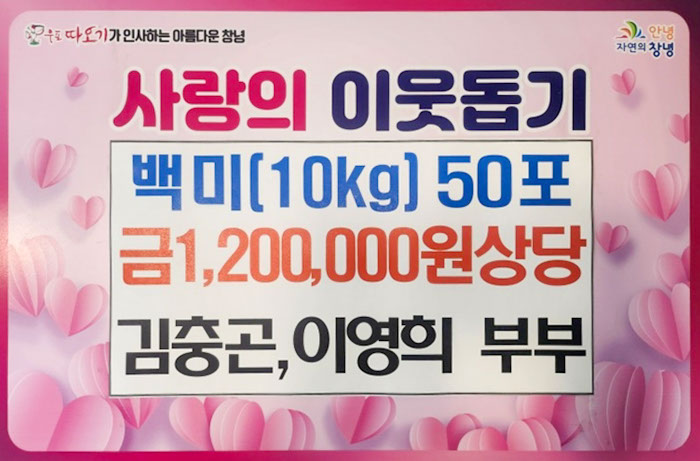 Áö³ÇØ 12¿ù 30ÀÏ ±èÃæ°ï¤ýÀÌ¿µÈñ ºÎºÎ´Â Áö¿ª ³» ¾î·Á¿î ÀÌ¿ôÀ» À§ÇØ ¹é¹Ì 50Æ÷¸¦ ±âŹÇÏ¸ç ¿ÃÇØµµ ³ª´®À» ½ÇõÇß´Ù.