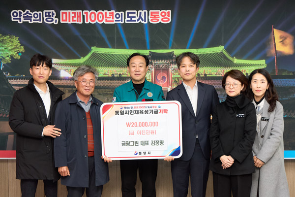 Å뿵½Ã´Â Áö³ÇØ 12¿ù 30ÀÏ ±Ý±¤±×¸° ±èÁ¤¸í ´ëÇ¥°¡ Å뿵½Ã¸¦ ¹æ¹®ÇØ ¹Ì·¡ 100³âÀÇ µµ½Ã Å뿵À» À̲ø¾î °¥ û¼Ò³â À°¼º¿¡ ÈûÀ» º¸Å°íÀÚ ÀÎÀçÀ°¼º±â±Ý 2,000¸¸¿øÀ» ±âŹÇß´Ù°í ¹àÇû´Ù.