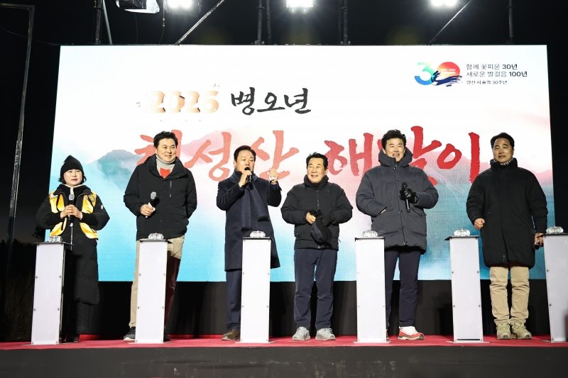 ¹Ú¿Ï¼ö µµÁö»ç´Â 1¿ù 1ÀÏ ¿ÀÀü õ¼º»ê ÇØ¸ÂÀÌ Çà»ç¿¡ Âü¼®ÇØ 1,600¿© ¸íÀÇ µµ¹Î°ú ÇÔ²² ÀÏÃâÀ» ¸ÂÀÌÇϸç "2026³âÀº µµ¹Î ÇູÀÌ ½ÇÁúÀûÀ¸·Î µµ¾àÇÏ´Â ¿ø³âÀÌ µÉ °Í"À̶ó°í ¹àÇû´Ù.