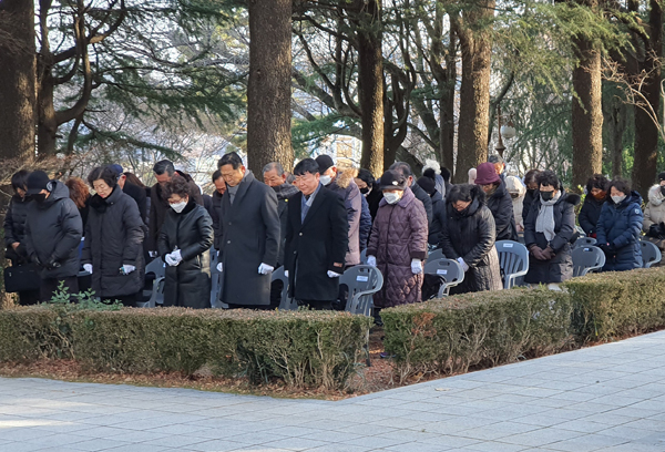 Âü¼®ÀÚµéÀº ¾ö¼÷ÇÑ ºÐÀ§±â ¼Ó¿¡¼ Âü¹è¸¦ ÁøÇàÇÑ ÈÄ ÇåÈ¿Í ¹¬³äÀ» ÅëÇØ ±¹°¡¸¦ À§ÇØ Èñ»ýÇÑ ºÐµéÀÇ ¼þ°íÇÑ Á¤½ÅÀ» Ã߸ðÇß´Ù.