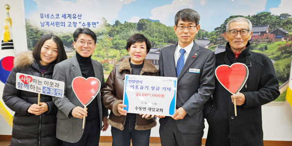 ¼öµ¿¸é Á¦Àϱ³È¸´Â "¿¬ÀÏ °è¼ÓµÇ´Â ÇÑÆÄ ¼Ó¿¡ ¿ì¸® Áö¿ªÀÇ ¾î·Á¿î ÀÌ¿ôµéÀÌ Á¶±ÝÀÌ¶óµµ µû¶æÇÑ ¿¬¸»À» º¸³ÂÀ¸¸é ÇÏ´Â ¸¶À½À» ¸ð¾Æ ±³È¸ ½Åµµµé°ú ³ëÀÎ ÀÏÀÚ¸® Âü¿© ¾î¸£½Åµé±îÁö ½Ê½ÃÀÏ¹Ý ¸ð±ÝÇÑ ¼º±Ý"À̶ó¸ç "¾î·Á¿î ÀÌ¿ôµé¿¡°Ô Àß Àü´ÞµÇ±æ ºÎʵ台´Ù"´Â ÆíÁö¿Í ÇÔ²² ±âŹ Àǻ縦 Àü´ÞÇß´Ù.