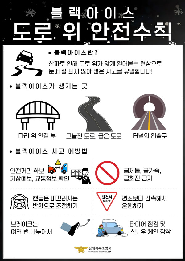 ±èÇØ¼ºÎ¼Ò¹æ¼´Â ÃÖ±Ù ±â¿Â ±Þ°ÇÏ¿Í ÇÔ²² µµ·Î °áºù À§ÇèÀÌ ³ô¾ÆÁü¿¡ µû¶ó ºí·¢¾ÆÀ̽º·Î ÀÎÇÑ ±³Åë»ç°í ¿¹¹æÀ» À§ÇÑ °¢º°ÇÑ ÁÖÀǸ¦ ´çºÎÇß´Ù.