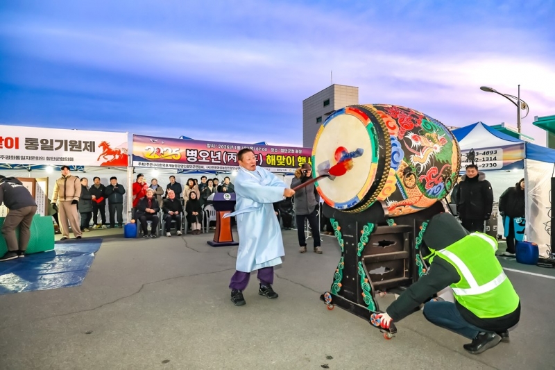ÇØ¸ÂÀÌ Çà»ç´Â ÅëÀÏ ±â¿øÁ¦¸¦ ½ÃÀÛÀ¸·Î »õÇØÀÇ ¹®À» ¿¬´Ù. À̾îÁö´Â ºÏ¿ï¸²Àº »õÇØÀÇ ±â¿îÀ» ±ú¿ì´Â ÈûÂù ¿ï¸²À¸·Î °ø°£À» ä¿î´Ù. ÇÔ¾ÈÈõ³ó¾ÇÀÇ °ø¿¬Àº »õÇØÀÇ Èï°ú »ýµ¿°¨À» ´õÇϰí, ÀÌ¾î ±º¼öÀÇ ½Å³â»ç°¡ À̾îÁö¸ç ±º¹Î¿¡°Ô ÇÑ ÇØÀÇ ¹æÇâ°ú ´ÙÁüÀ» ÀüÇÏ´Â ½Ã°£À» °®´Â´Ù.