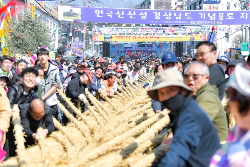 Áٴٸ®±â¿¡ »ç¿ëµÇ´Â ÁÙÀº ÁýÁýÀÌ ¸ðÀº 500µ¿ÀÇ Â¤À¸·Î ¸¸µé¾îÁø´Ù. »õ³¢¸¦ ²¿°í, ´Ù½Ã ²¿¾Æ Áö¸§ 1m ÀÌ»ó, ±æÀÌ 130m, ¹«°Ô 40Åæ¿¡ ´ÞÇÏ´Â °Å´ëÇÑ ÁÙÀ» ¿Ï¼ºÇÑ´Ù. ÀÌ ÁÙÀº `û·æ`°ú `¹éÈ£` µÎ ÆíÀ¸·Î ³ª´µ¾î 3Àü2¼±½ÂÁ¦·Î ´ç±ä´Ù. 3000¿©¸íÀÇ ÁÖ¹ÎÀÌ ÇÔ²² ÈûÀ» ¸ðÀ¸´Â Àå°üÀº ±× ÀÚü·Î °øµ¿Ã¼ÀÇ »ó¡ÀÌ´Ù.