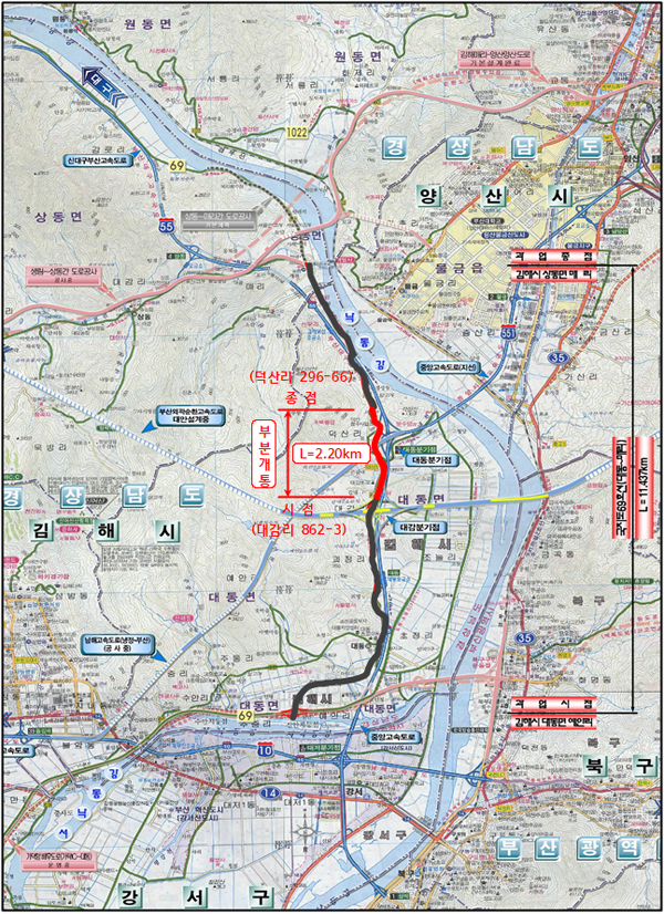 ±èÇØ½Ã´Â 12ÀÏ ¿ÀÀü 10½Ã ±¹Áöµµ 69È£¼± ÀϺα¸°£(´ëµ¿ °¨³»±³Â÷·Î~½Å¾Ï±³Â÷·Î) 2.2km°¡ °³ÅëµÆ´Ù°í ¹àÇû´Ù.
