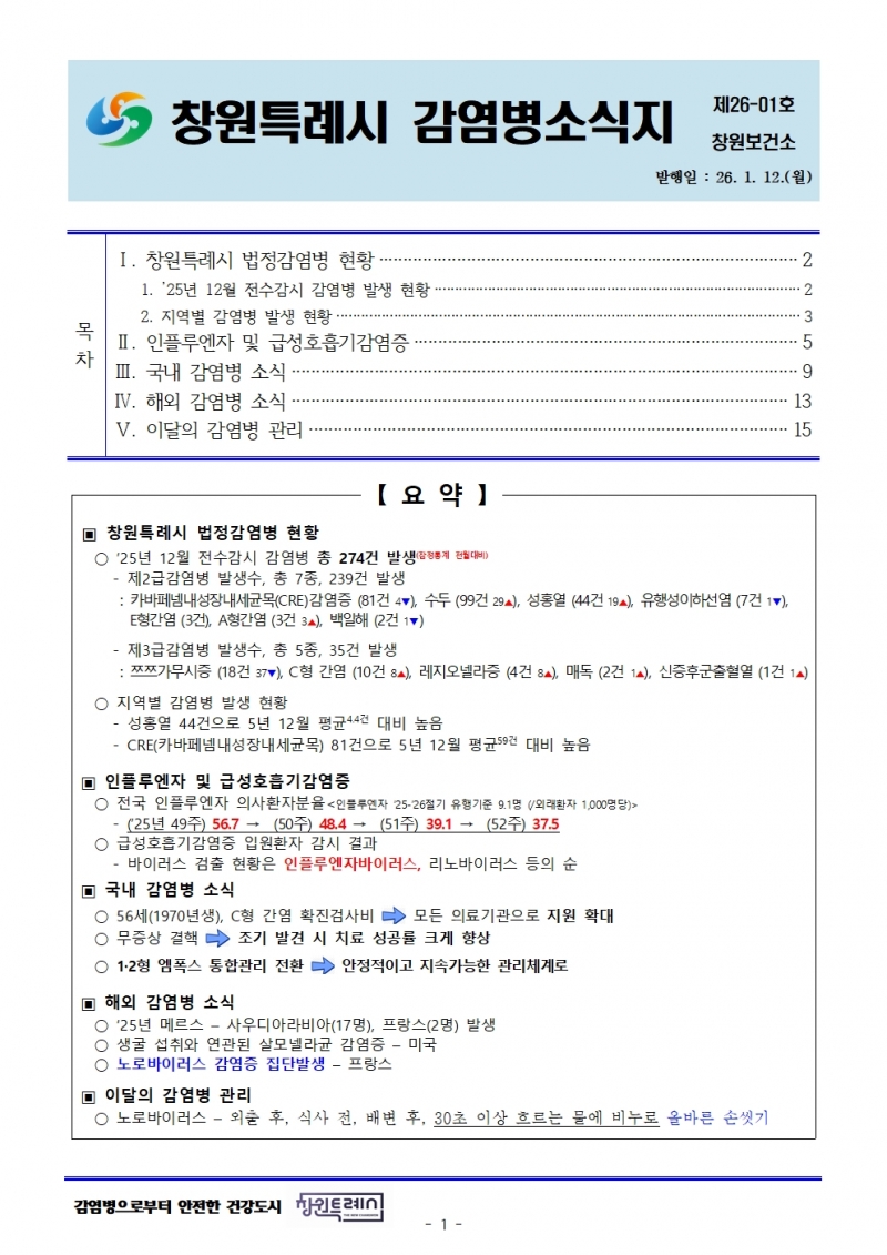 â¿øÆ¯·Ê½Ã´Â ±âÈĺ¯È·Î ÀÎÇÑ ±â¿Â »ó½Â°ú ÇØ¿Ü À̵¿ Áõ°¡ µîÀ¸·Î °¨¿°º´ ¹ß»ý ¾ç»óÀÌ ´Ù¾çÇØÁö¸é¼ ½Ã¹Î ´«³ôÀÌ¿¡ ¸ÂÃá °¨¿°º´ Á¤º¸ Á¦°øÀ¸·Î ¿¹¹æ ¿ª·®À» ³ôÀ̰íÀÚ `Á¦26-01È£, â¿øÆ¯·Ê½Ã °¨¿°º´ ¼Ò½ÄÁö`¸¦ Á¤±â ¹ßÇàÇÑ´Ù.