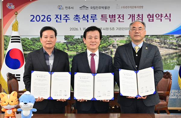 ÁøÁֽô 15ÀÏ ½Ãû 5Ãþ ±â¾÷ÀÎÀÇ ¹æ¿¡¼ `±¹¸³ÁøÁÖ¹Ú¹°°ü`, `(»ç)ÁøÁÖ¸ñ¹®È»ç¶û¹æ`°ú `2026 ÁøÁÖ Ã˼®·ç Ưº°Àü`ÀÇ °³ÃÖ¸¦ À§ÇÑ ¾÷¹«Çù¾à(MOU)À» ü°áÇß´Ù°í ¹àÇû´Ù.