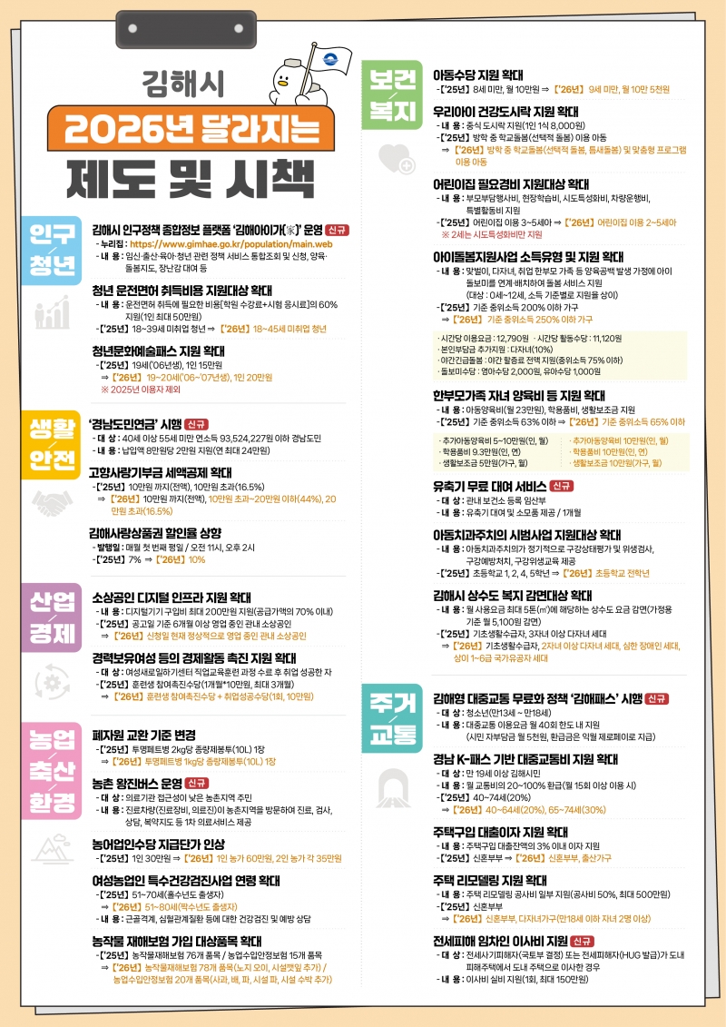 ±èÇØ½Ã°¡ 2026³â »õÇØ ´Þ¶óÁö´Â 6°³ ºÐ¾ß 59°³ Á¦µµ¿Í ½ÃÃ¥À» ¾È³»Çß´Ù.
