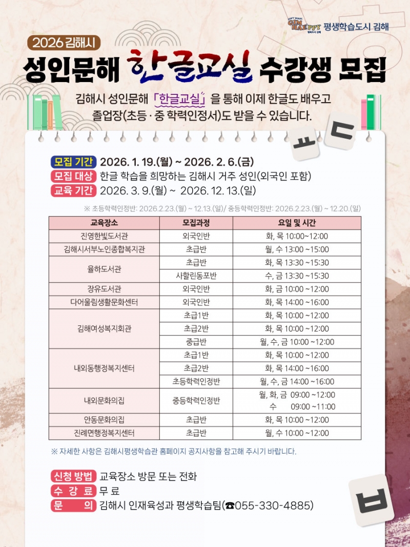 ±èÇØ½Ã´Â 19ÀϺÎÅÍ ¿À´Â 2¿ù 6ÀϱîÁö `2026³â ¼ºÀι®Çر³½Ç` ¼ö°»ýÀ» ¸ðÁýÇÑ´Ù.