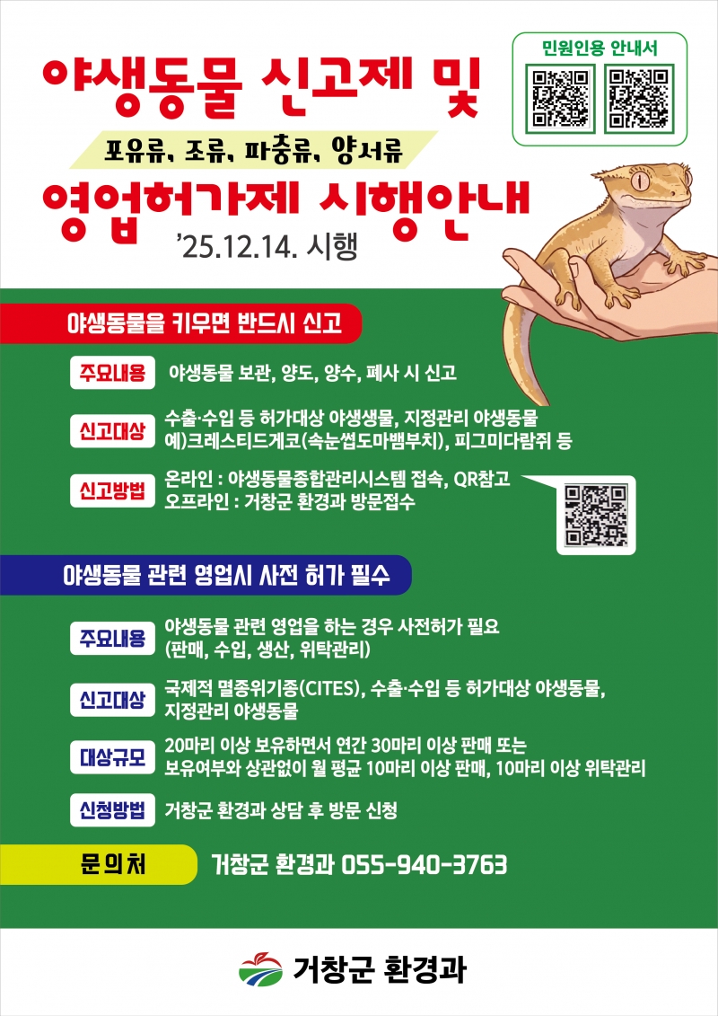 ¶ÇÇÑ °³ÀÎÀÌ ±â¸£´Â ¾ß»ýµ¿¹°µµ º¸°ü, ¾çµµ¤ý¾ç¼ö, Æó»ç µîÀ» Àǹ«ÀûÀ¸·Î ½Å°íÇØ¾ß ÇÑ´Ù. ´Ù¸¸ ¹ý ½ÃÇà ÀÌÀü(2025. 12. 14)ºÎÅÍ Å°¿ì´ø ¹é»ö ¸ñ·Ï ¿Ü ¾ß»ýµ¿¹°Àº 2026³â 6¿ù 13ÀϱîÁö º¸°ü ½Å°íÇÏ¸é °è¼Ó Ű¿ï ¼ö ÀÖÁö¸¸, Áõ½Ä¤ý°Å·¡´Â Çã¿ëÇÏÁö ¾Ê´Â´Ù.